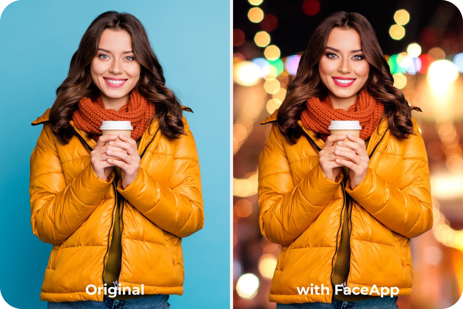 Winter imagery isn’t always about snow. It’s also about holiday vibes, softness, and mood. FaceApp supports cozy winter photography by letting users fine-tune contrast, tone, and brightness until the image feels seasonally aligned.
